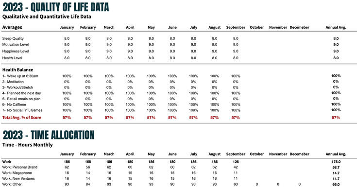 Based on Rob Dyrdek's exact system he has used to create tracking for daily habits, motivation & time tracking and all the data is pulled into beautiful visualisations. It's customisable and very user friendly.